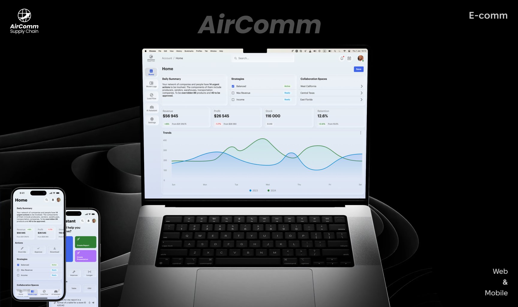 Aircomm's industry-leading supply chain platform is purpose-built to be truly cross-functional so you can achieve the speed, resiliency, and sustainability to succeed in an uncertain world.